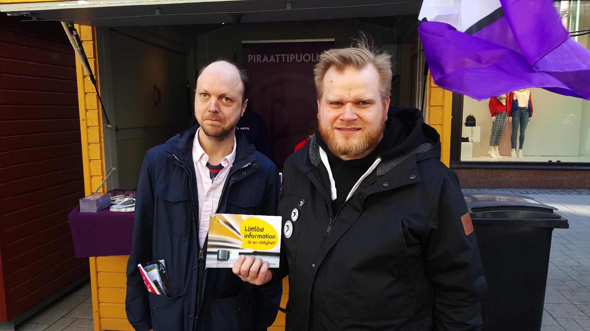 Janne Uotila (Pir) stöder vår kampanj om att rätten till lättläst information ska skrivas in i lagen. Med på bilden är även Anders Ranta-aho från Steg för Steg.