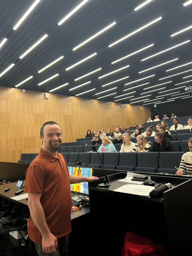 Rex fick berätta om sina hobbyer, sitt arbete i restaurangen som är i samma byggnad som skolan Novia.