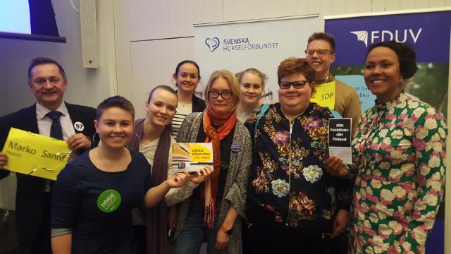Marko Ekqvist (Sannf), Bicca Olin (gröna), Saga Nyrén (Pir), Silja Borgarsdóttir Sandelin (SFP), Veera Hellman (Saml), Jonne Juntura (SDP) och Elina Sagne-Ollikainen (FP) stöder vår kampanj om att rätten till lättläst information ska skrivas in i lagen. Med på bilden är även Maria Selenius och Daniela Frankenhaeuser från Steg för Steg.Läs mera »