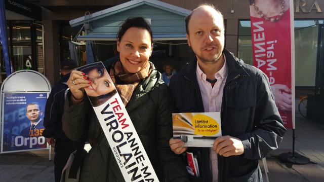 May-Gret Axell (KD), Lisen Sundqvist (VF), Tuula Närvä (Gröna), Leena Nikkari-Östman (SFP), Päivi Karppi (Sannf.) och Kim Berg (SDP) stöder vår kampanj. Med på bilden är även Lisbeth Hemgård, Thomas Håkans, Johnny Storbacka och Hanna Skog.Läs mera »