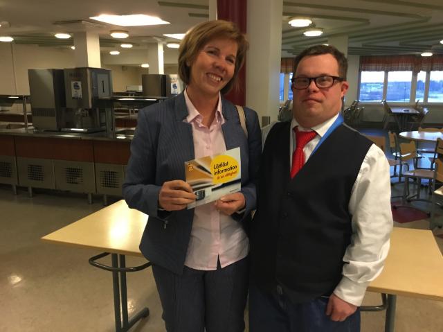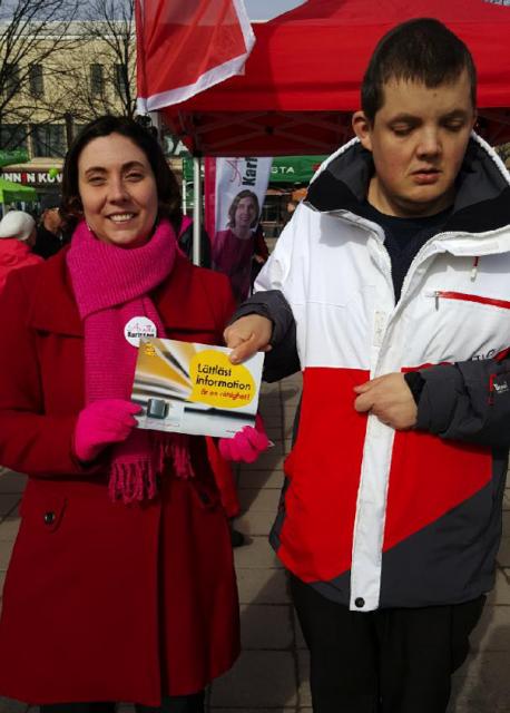Anette Karlsson (SDP) stöder vår kampanj om lättläst. Med på bilden är även Johan Lustig från Steg för Steg.Läs mera »