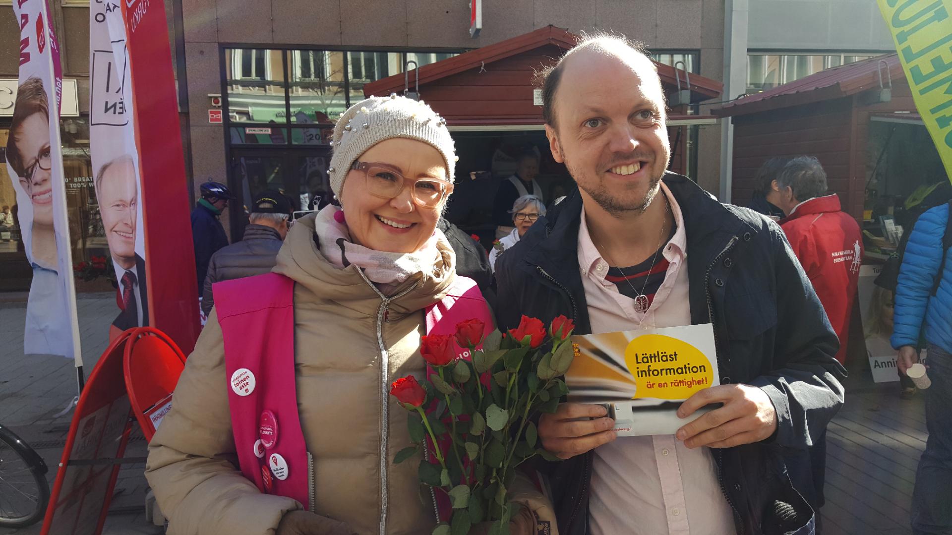 Annina Ruotto (Centern) stöder vår kampanj om att rätten till lättläst information ska skrivas in i lagen. Med på bilden är även Anders Ranta-aho från Steg för Steg.Läs mera »