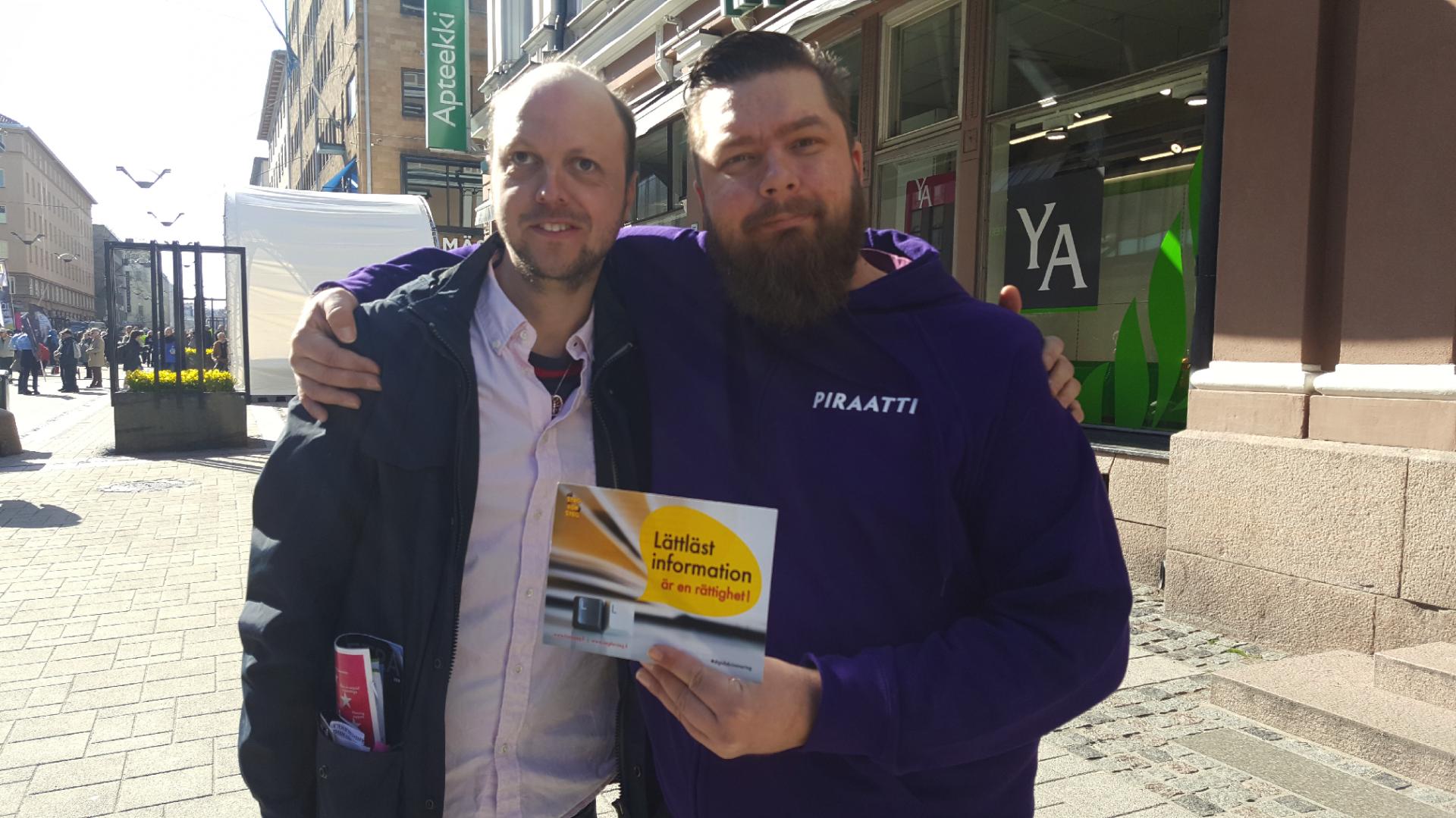 Janne Uotila (Pir) stöder vår kampanj om att rätten till lättläst information ska skrivas in i lagen. Med på bilden är även Anders Ranta-aho från Steg för Steg.Läs mera »
